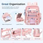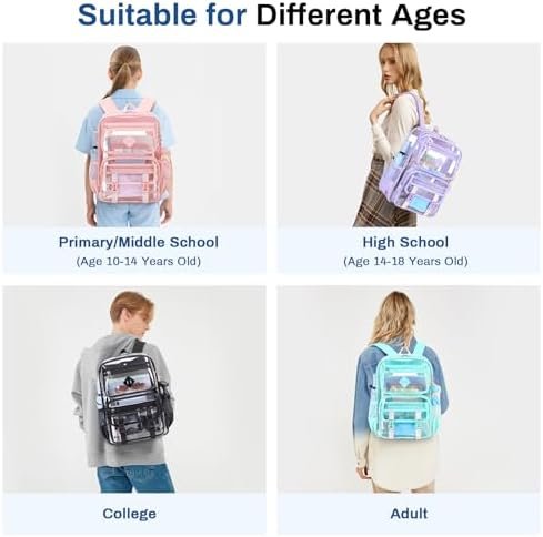 • With multiple functional pockets, this clear backpack offers plenty of storage space for all your essentials. From books and notebooks to laptops and water bottles, there’s room for everything you need for your day. The versatility of this backpack makes it suitable for any occasion, whether you are going to class, a meeting or a day with friends.