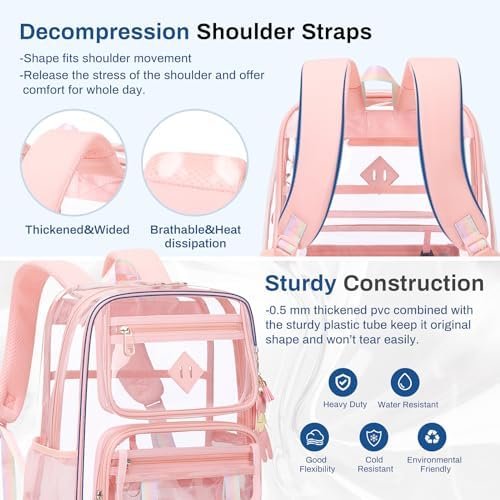 Sisipoet Clear School Backpack PVC Bookbag Durable Transparent Backpack for Stadium Events Clear Bag, 1pc Pink  Amazon.de: Fashion