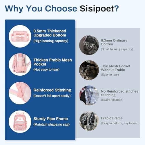 Sisipoet durable transparent backpack The durable clear backpack is the perfect combination of style and function, making it a must-have for anyone on